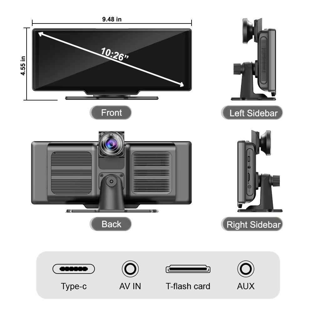 10.26″ 4K Dash Cam with Apple Car Play & Android Auto